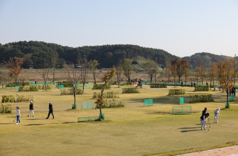 남대천과 송이조각공원 옆에 자리한 45홀 규모의 대형 구장으로, 가족·친구·동호회까지 모두 만족할 수 있는 명소예요.
